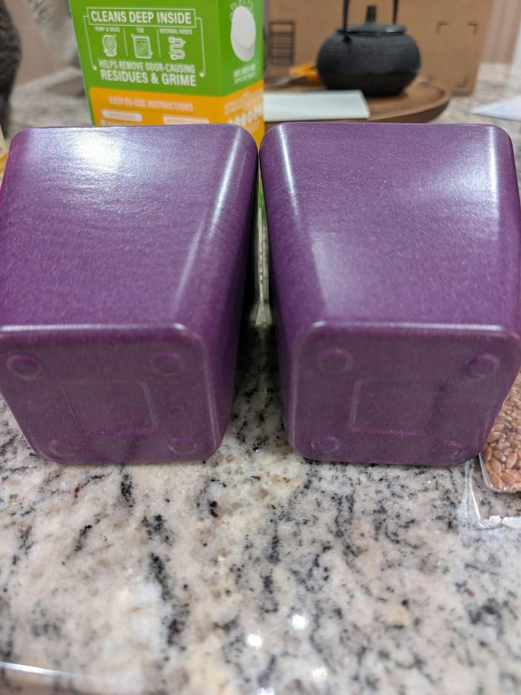 According to the box I received, there should have been 2 packets of wheatgrass seeds, at least 2 tablespoons of crab meal fertilizer, 1 coco coir brick, 2 bamboo pots.